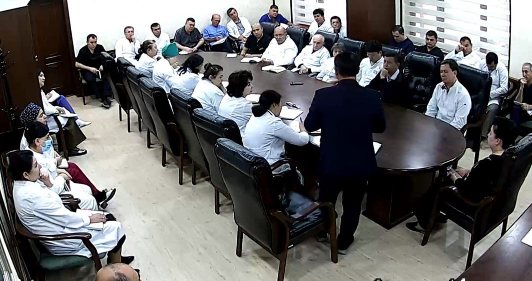 Toshkent Davlat tibbiyot universitetining ko‘p tarmoqli klinikasida O‘zbekiston Respublikasi Sog‘liqni saqlash vazirligining 2025-yil 08-iyuldagi “Sog‘liqni saqlash vazirligining korrupsiyaga qarshi kurashish sohasiga oid ichki me’yoriy hujjatlarini tasdiqlash to‘g‘risida”gi 203-sonli hamda 2025-yil 4-noyabrdagi “Sog‘liqni saqlash sohasida “Sirli mijoz” institutini joriy yetish to‘g‘risida”gi 339-sonli buyrug‘lari ijrosini ta’minlash to‘g‘risida klinikaning Bosh shifokori D.A.Rustamova raisligida yo‘nalish bo‘yicha Bosh shifokor o‘rinbosarlari, bo‘lim boshliqlari, bo‘linma va poliklinika mudirlari, ishchi xizmatchilar hamda klinikaning kasaba uyushmasi ishtrokida yig‘ilish o‘tkazildi.