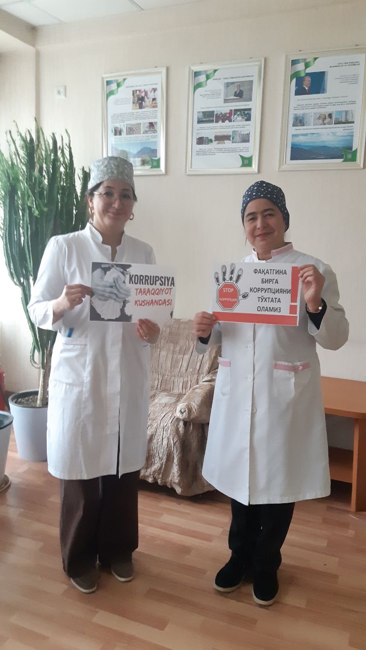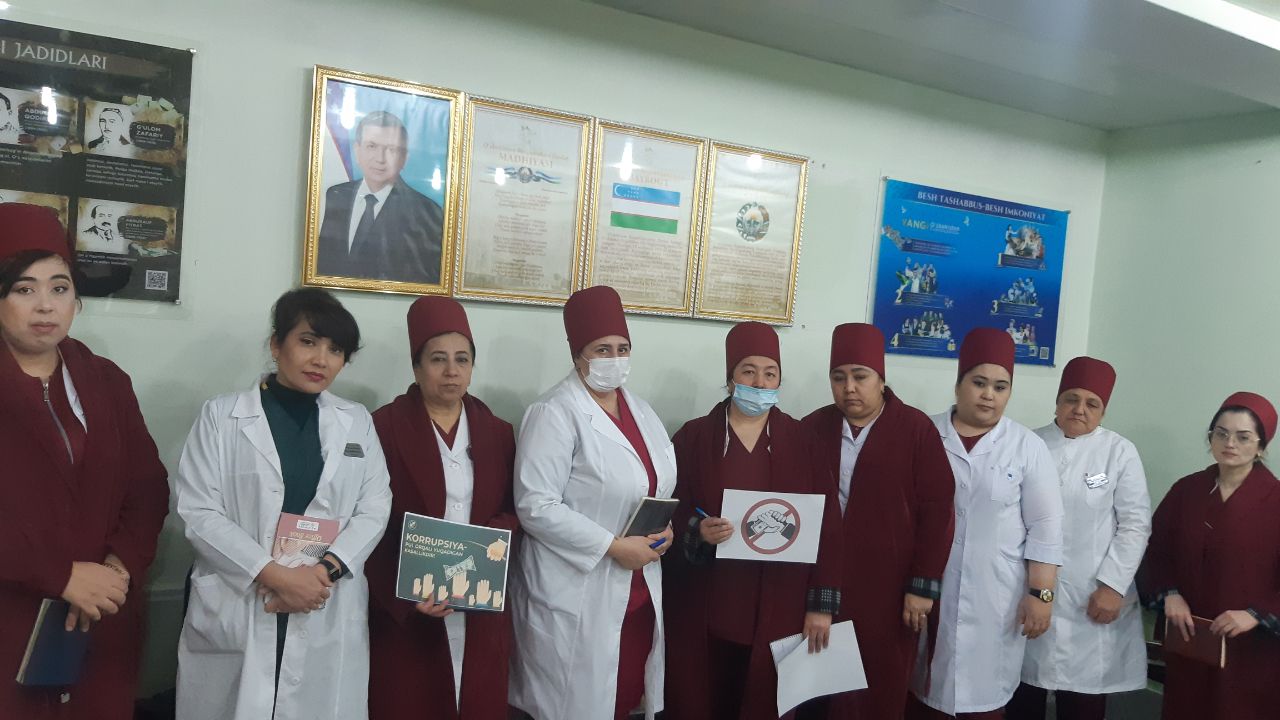 Toshkent Davlat tibbiyot universitetining ko‘p tarmoqli klinikasi bosh shifokor o‘rinbosari Umarov Aziz Rustamovich hamda Korrupsiyaga qarshi ichki nazorat bo‘limi boshlig‘i Z.Sh.Ortiqov, Kasaba uyushmasi qo‘mita raisi O.R.Eshovalar hamda tug‘ruq komplekisi hodimlari ishtrokida “Korrupsiyaga qarshi birgalikda kurashamiz” mavzusida targ‘ibot tadbiri o‘tkazildi.